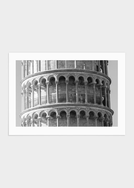 Svartvitt fotografi på Lutande tornet i Pisa fotograferat av Julia M. Gustafsson. Motivet bjuder på vacker arkitektur med imponerande detaljer. Det...