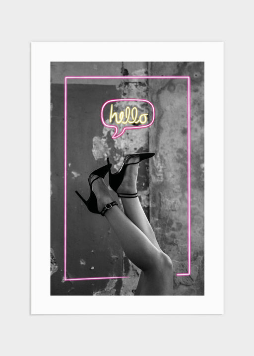 Hello neon poster är en lekfull färgklick i hemmet för dig som vill ha något som sticker ut! Motivet är svartvitt och föreställer två ben som stick...