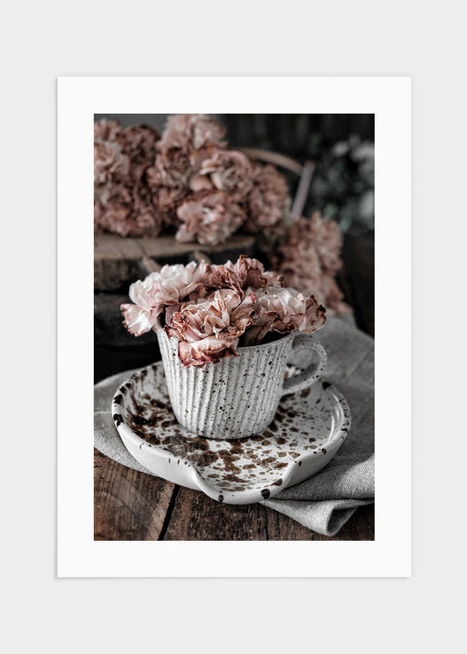 Vackert motiv fotograferat av Årstidens Bästa föreställande en prickig kaffekopp med rosa blommor i. Ett motiv med lugna färger som passar perfekt ...