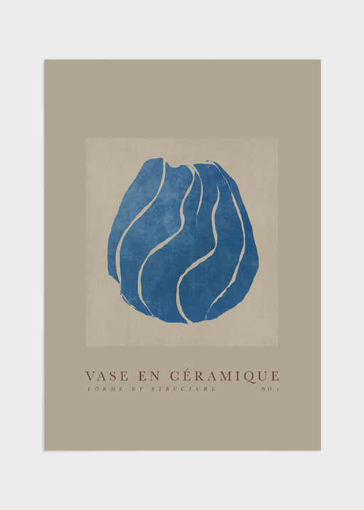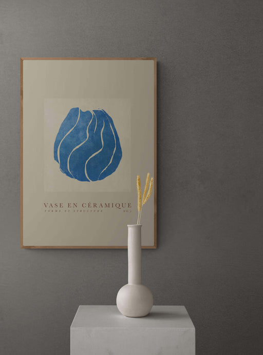 "Vase en céramique" är franska och betyder "Keramik vas". Motivet bjuder på vackra mjuka former och en härlig blå nyans. Bakgrunden går i en varm b...