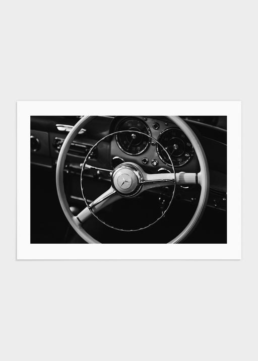 Svartvit fotografi på en snygg Mercedes-ratt. Motivet är tryckt på ett matt premiumpapper och bjuder på många fina detaljer som enkelt fångar ögat...