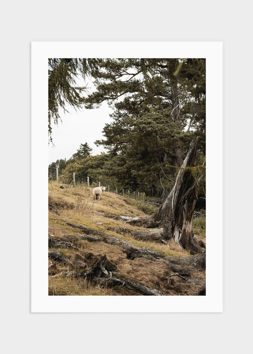 Vackert och minimalistiskt fotografi av ett får i Skottland. De jordnära tonerna hjälper dig att skapa en harmonisk känsla i ditt sovrum eller vard...