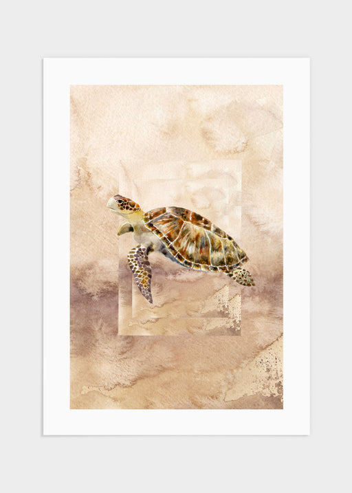 Gulligt postermotiv på en sköldpadda. Bakgrunden är målad med vattenfärg i nyanserna brunt och beige. Postern passar perfekt om du vill skapa ett l...