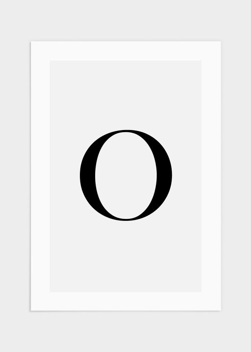 Bokstavstavla med bokstaven O. Ett stilrent och minimalistiskt motiv som passar i de flesta hem. Postern har en ljusgrå bakgrund, svart bokstav ...