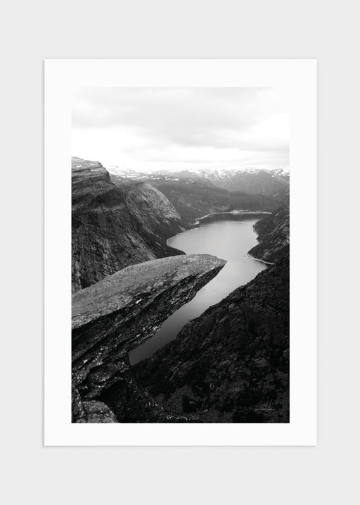 Bild på den fantastiska utsikten över Trolltunga i Norge, fotograferat av Julia M. Gustafsson. Trolltunga är en fantastisk stenformation på unge...