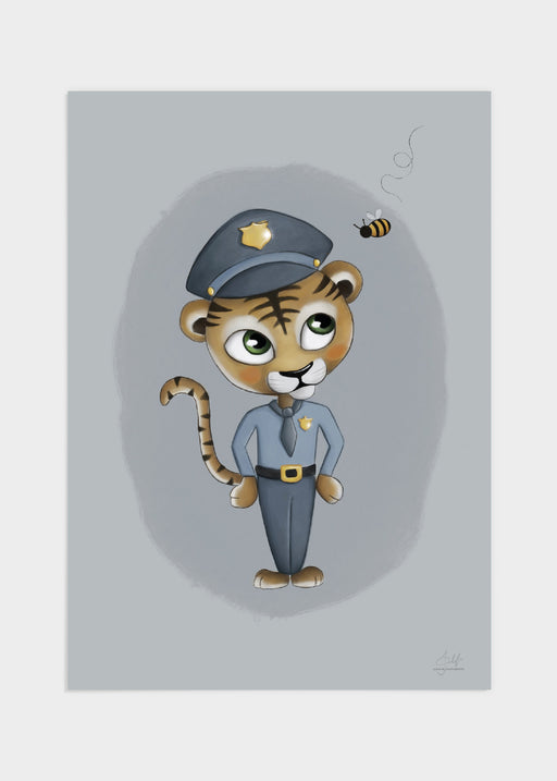 Har ni sett en sötare tiger-polis? Inte vi heller! Postern går i fina blåa nyanser och tigern har sin neutrala gul-orangea päls. En liten humla ...