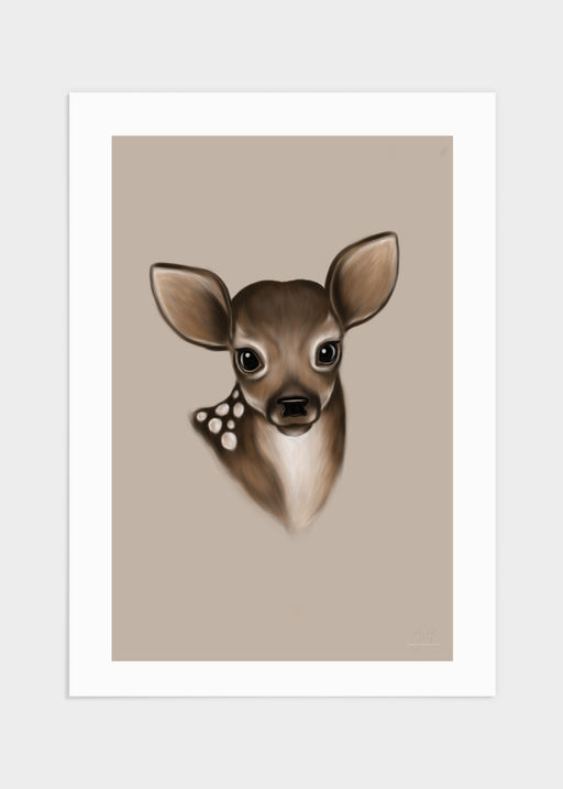 Supergulligt barnmotiv I jordnära färger. Sätt pricken över i:et i barnrummet med hjälp av denna tavla. Vi har även liknande motiv med en gira...