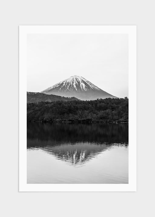Svartvitt fotografi på Japans högst berg, majestätiska Mount Fuji. Det är en aktiv stratovulkan och är känt för sin graciösa koniska form. Det är l...
