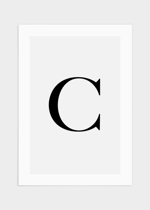 Bokstavstavla med bokstaven C. Ett stilrent och minimalistiskt motiv som passar i de flesta hem. Postern har en ljusgrå bakgrund, svart bokstav ...