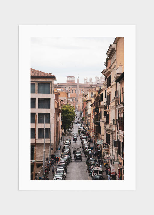 Charmigt motiv i varma färger som föreställer en gata och byggnader i vackra Rom, Italien. Motivet har ett fint djup i sig på grund av hur bilden ä...
