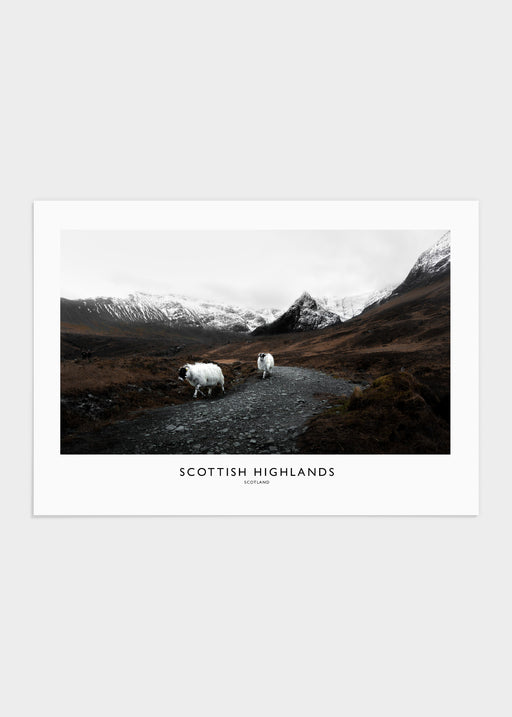 Vackert fotografiskt motiv på Skottlands vackra natur! Höga berg med snötäckta toppar och grusvägar som slingrar sig genom slättlandskapen. Motivet...