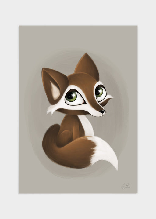 Söt liten rävunge med beige-grå bakgrund. Räven har gröna ögon och sin rödbruna päls. Passar perfekt i ett barnrum som vill hålla sig till de ne...
