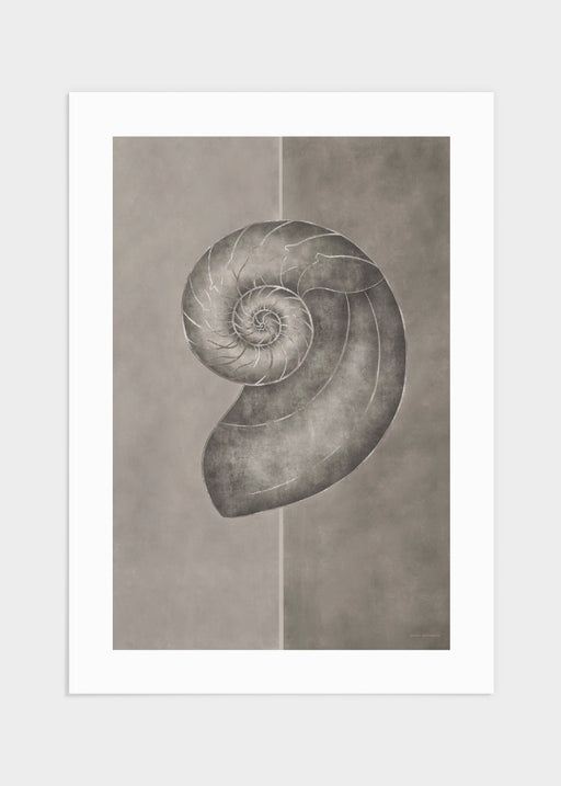 Vackert och uttrycksfullt handmålat motiv utav Julia M. Gustafsson. Motivet föreställer ett snäckskal/fossil. Motivet går i varma neutrala färg...