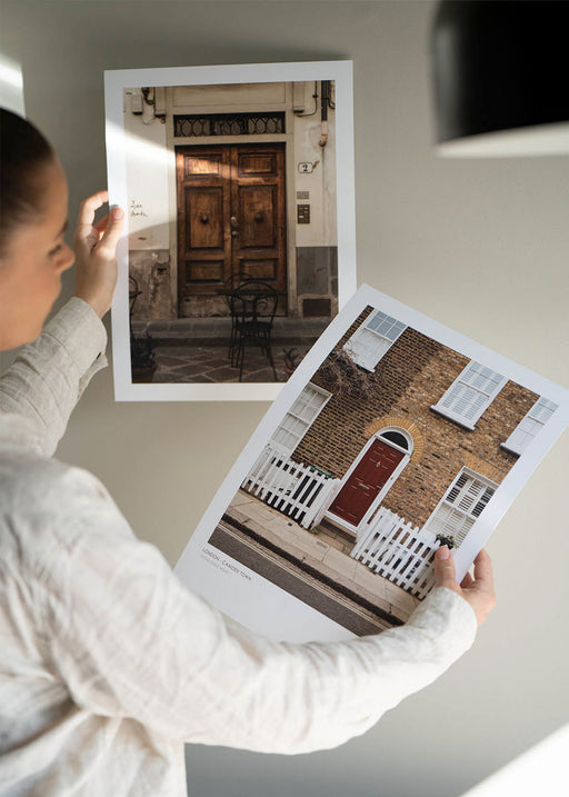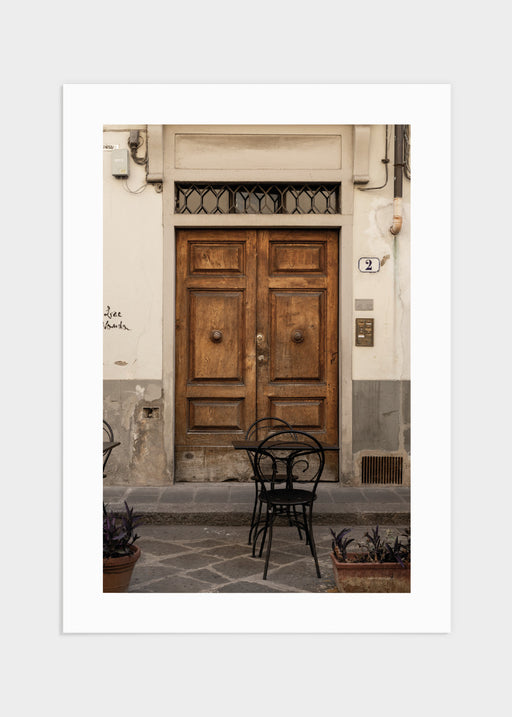Det här fotografiet ger dig möjligheten att ha en liten bit av Italien i ditt hem, vem vill inte det? Den bruna trädörren är vackert prydd med deko...