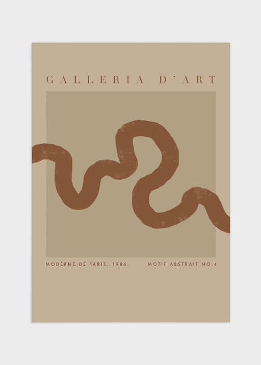 Trendig illustration i beiga och roströda toner. Motivet föreställer ett mjukt oregelbundet sträck med texten "Galleria d´art". Låt postern tala fö...